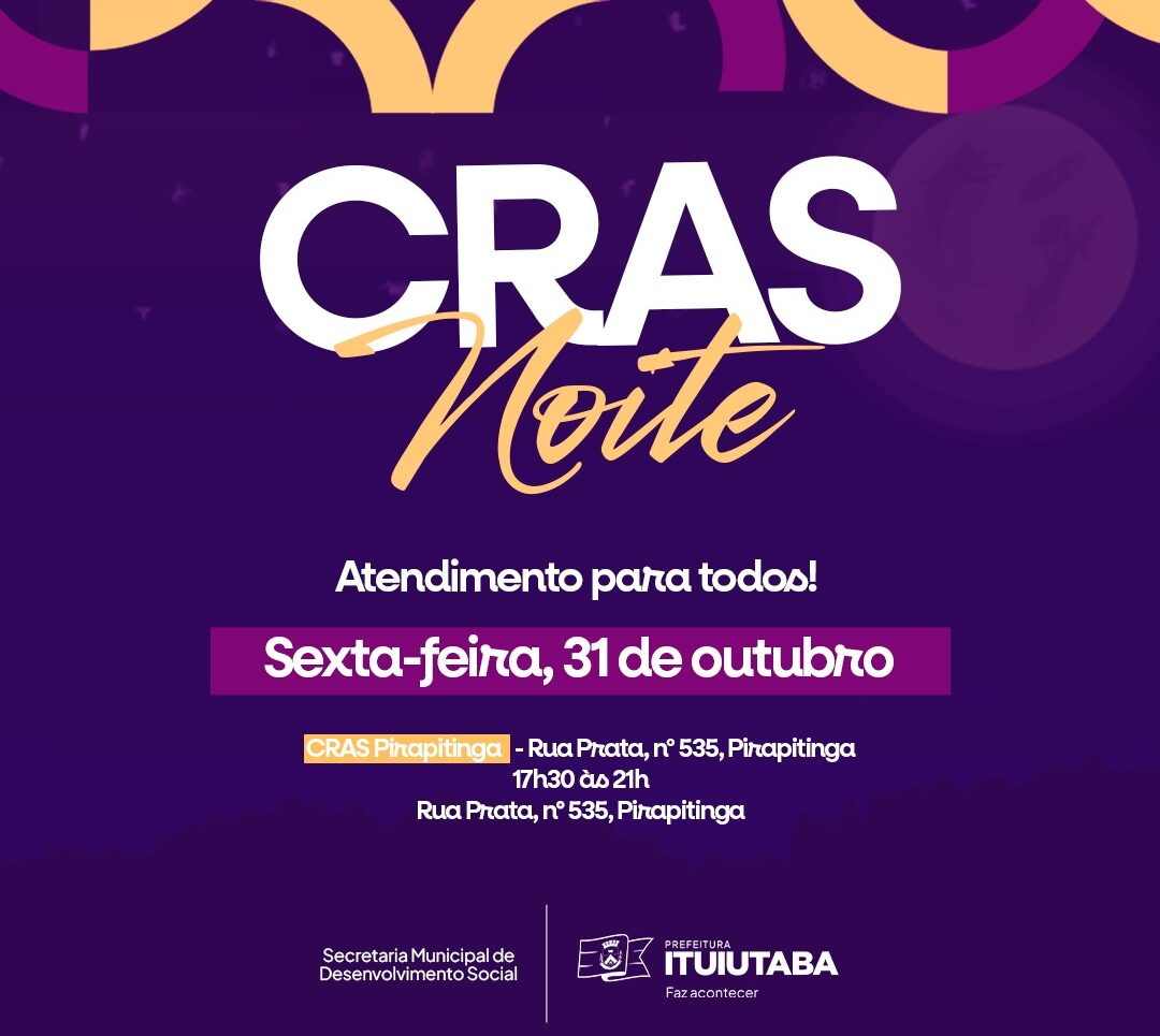 A Prefeitura de Ituiutaba, por meio da Secretaria de Desenvolvimento Social, realiza na próxima sexta-feira (31) mais uma edição do projeto CRAS Noite, no Centro de Referência de Assistência Social (CRAS) do bairro Pirapitinga, localizado na Rua Prata, nº 535. O atendimento será das 17h30 às 21h.