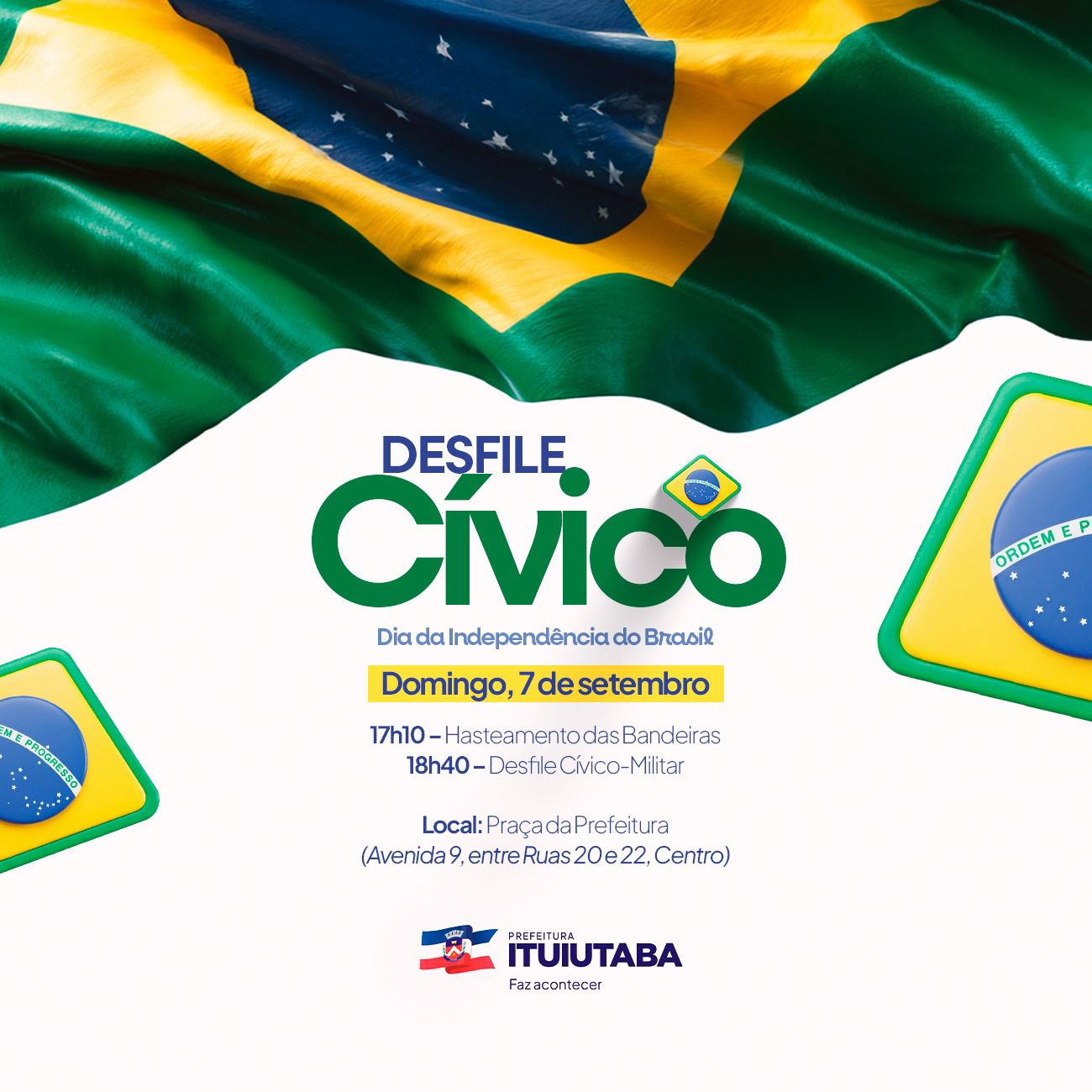 A Prefeitura de Ituiutaba, por meio da Secretaria de Educação, Esporte e Lazer, realiza no próximo domingo, 7 de setembro, as atividades em comemoração ao Dia da Independência do Brasil.