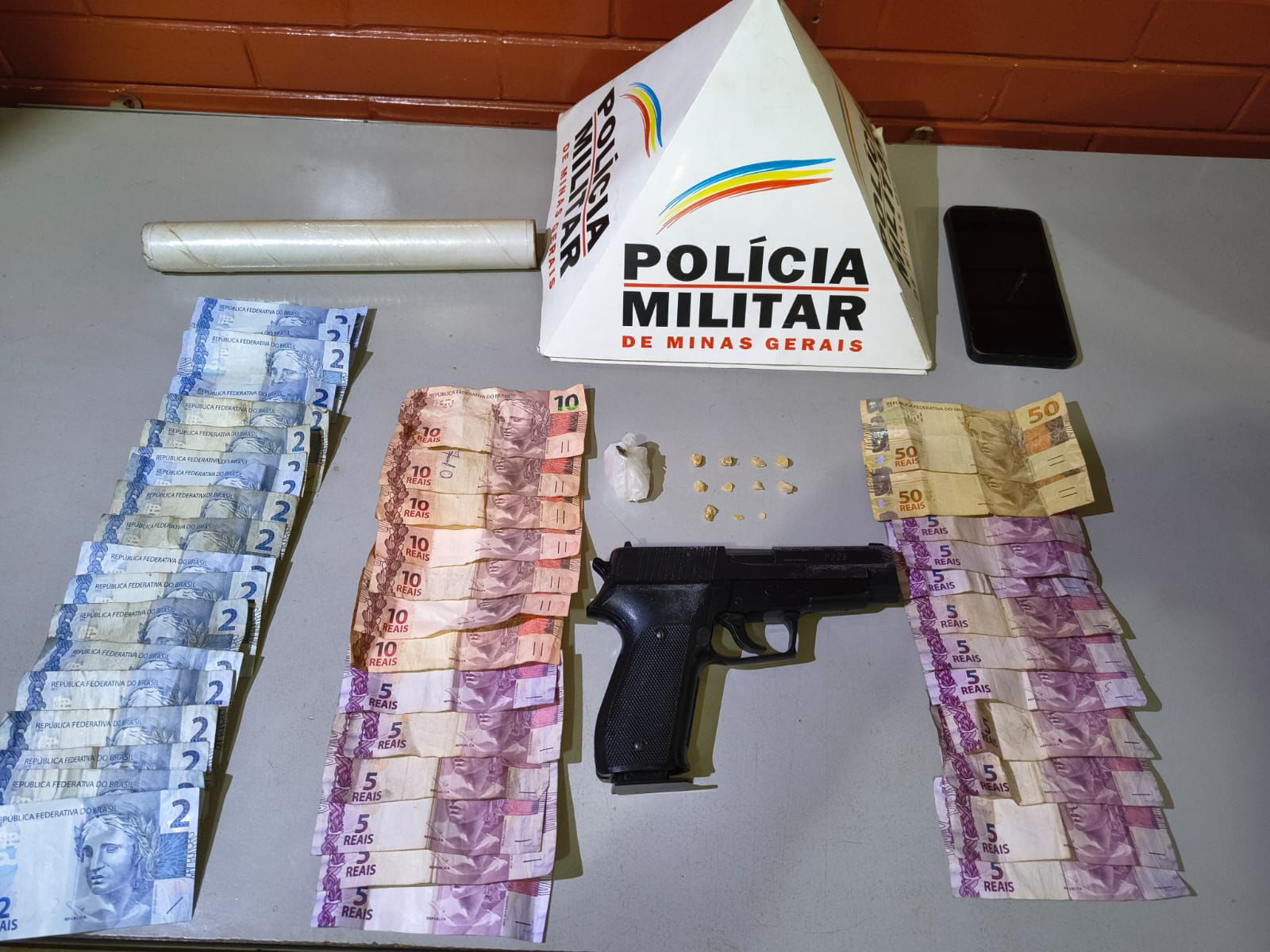 Além do material relacionado ao Tráfico de drogas, também foi encontrada uma réplica de arma de fogo.
