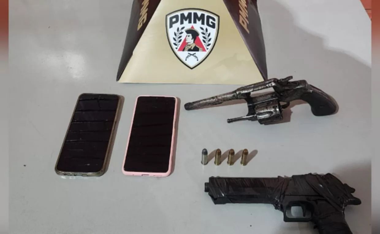 Entre os itens recolhidos estão um revólver calibre .38, um simulacro de arma de fogo, quatro munições intactas do mesmo calibre e dois aparelhos celulares.