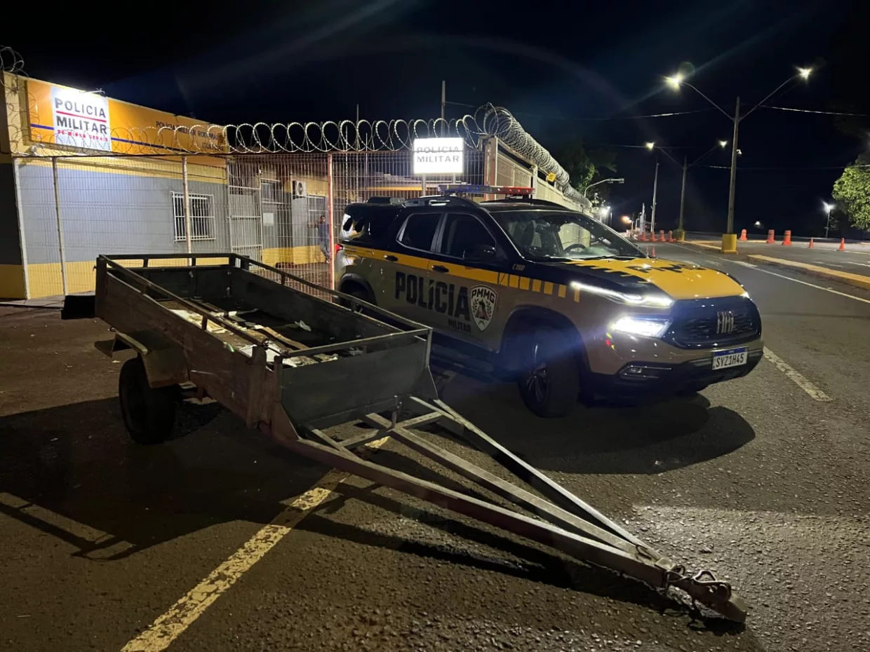 Os policiais realizaram uma busca detalhada no reboque sem placa. Eles conseguiram localizar o número de chassi escondido no equipamento. Após consultas aos sistemas de segurança, as autoridades constataram que um veículo com o mesmo chassi estava registrado e em circulação na cidade de Uberlândia.