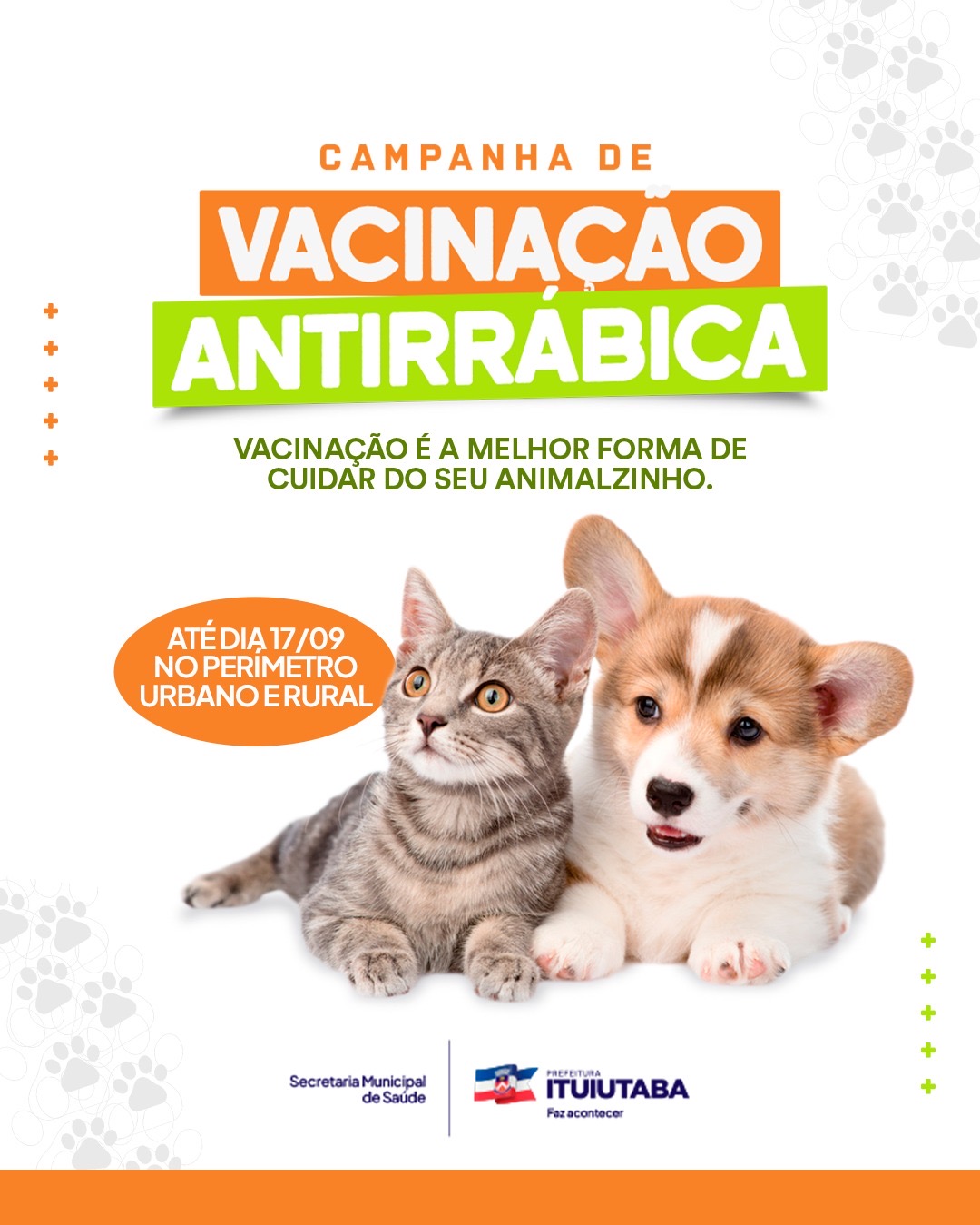 A Prefeitura de Ituiutaba, por meio da Secretaria de Saúde e do Centro de Controle de Zoonoses, iniciou nesta segunda-feira, 4 de agosto, a Campanha de Vacinação Antirrábica 2025. A iniciativa tem como objetivo proteger cães e gatos contra a raiva, uma zoonose viral considerada letal tanto para animais quanto para seres humanos.